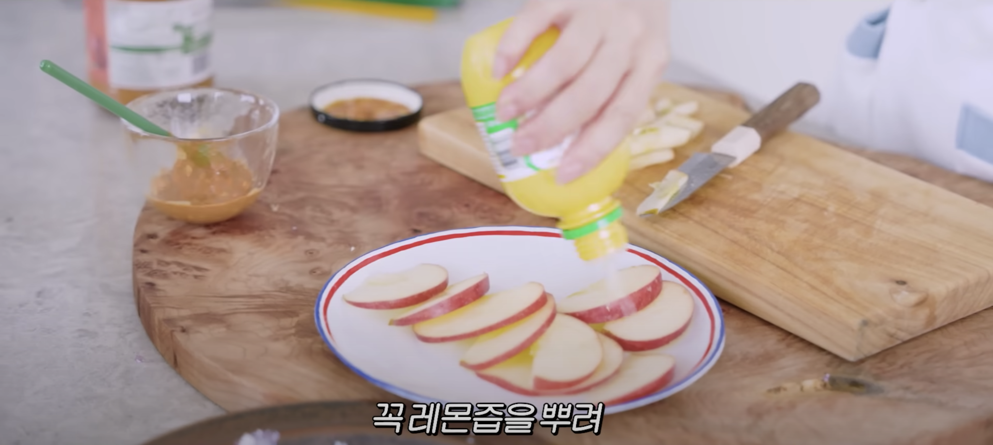 잘게썬 사과에 레몬즙과 올리브유를 뿌리고