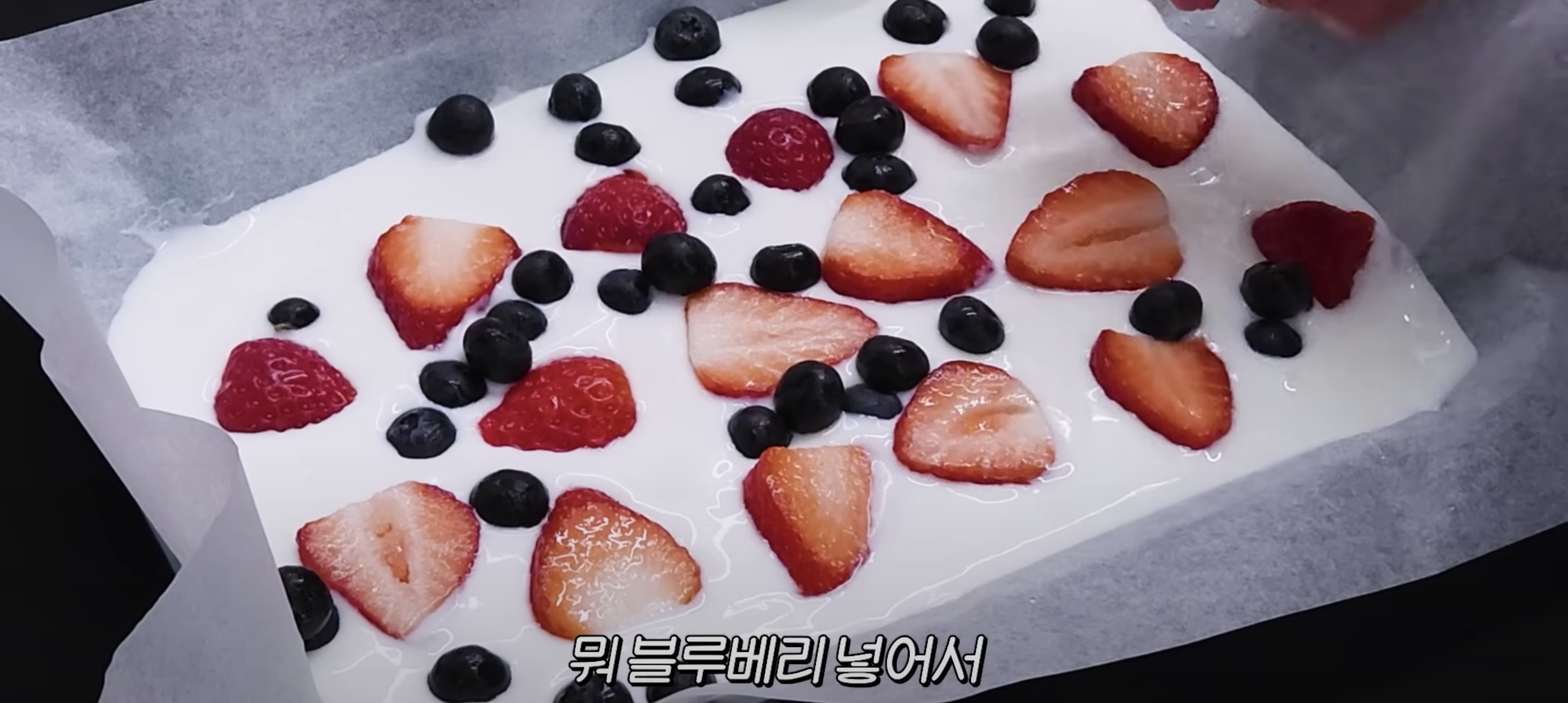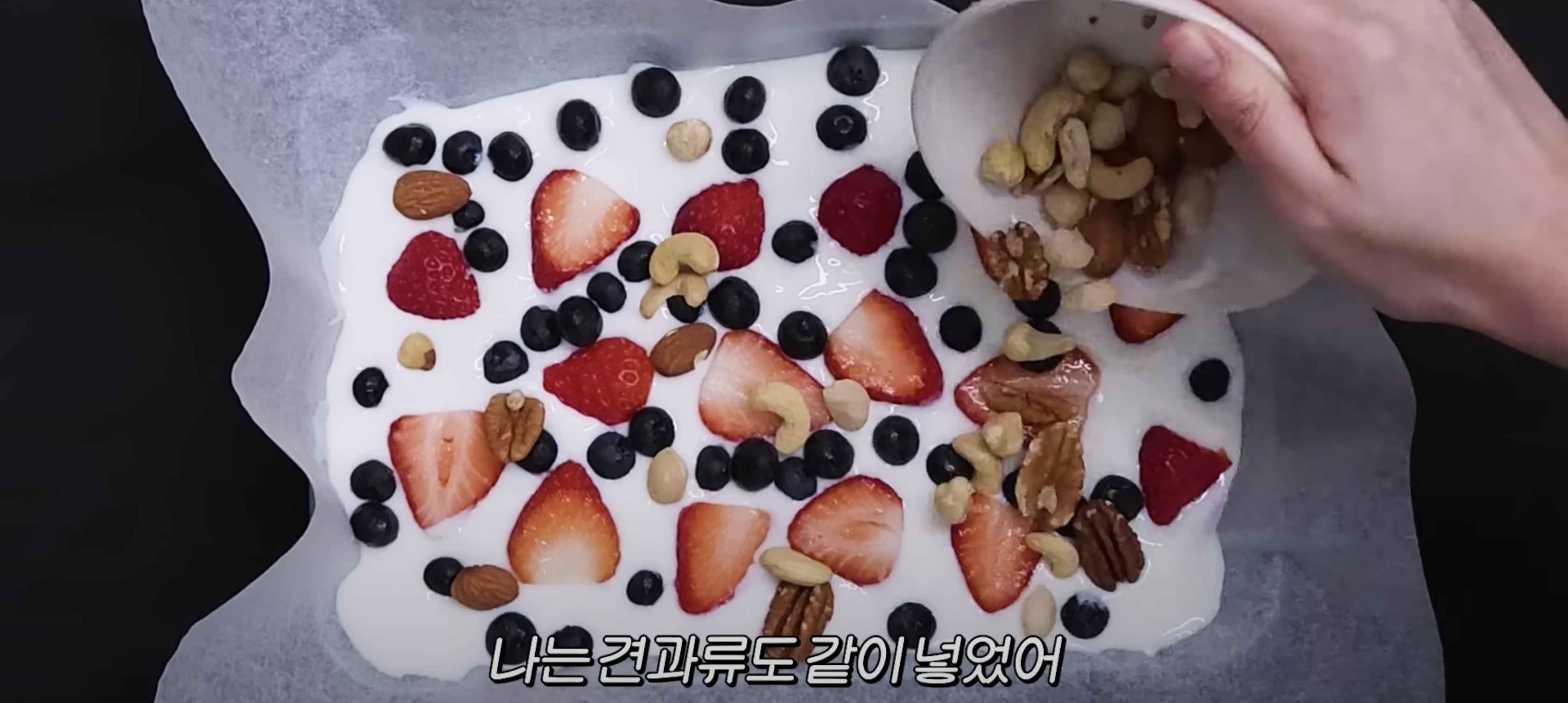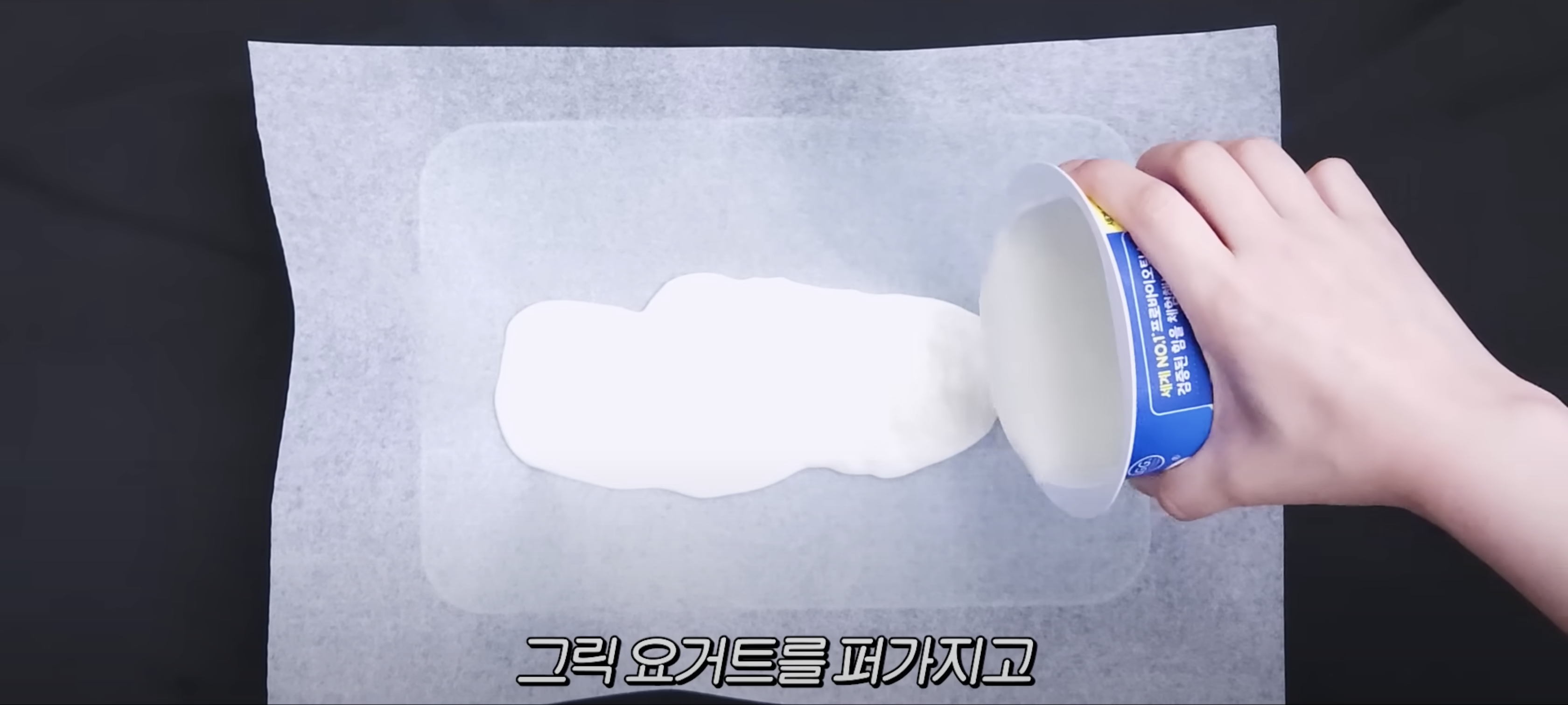 트레이에 종이호일깔고 그릭요거트를 펴발라준뒤에