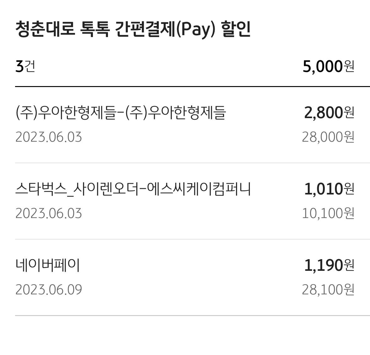 패스트푸드점은 제가 잘 이용하지 않아서 할인을 못 받았네요ㅠㅠ