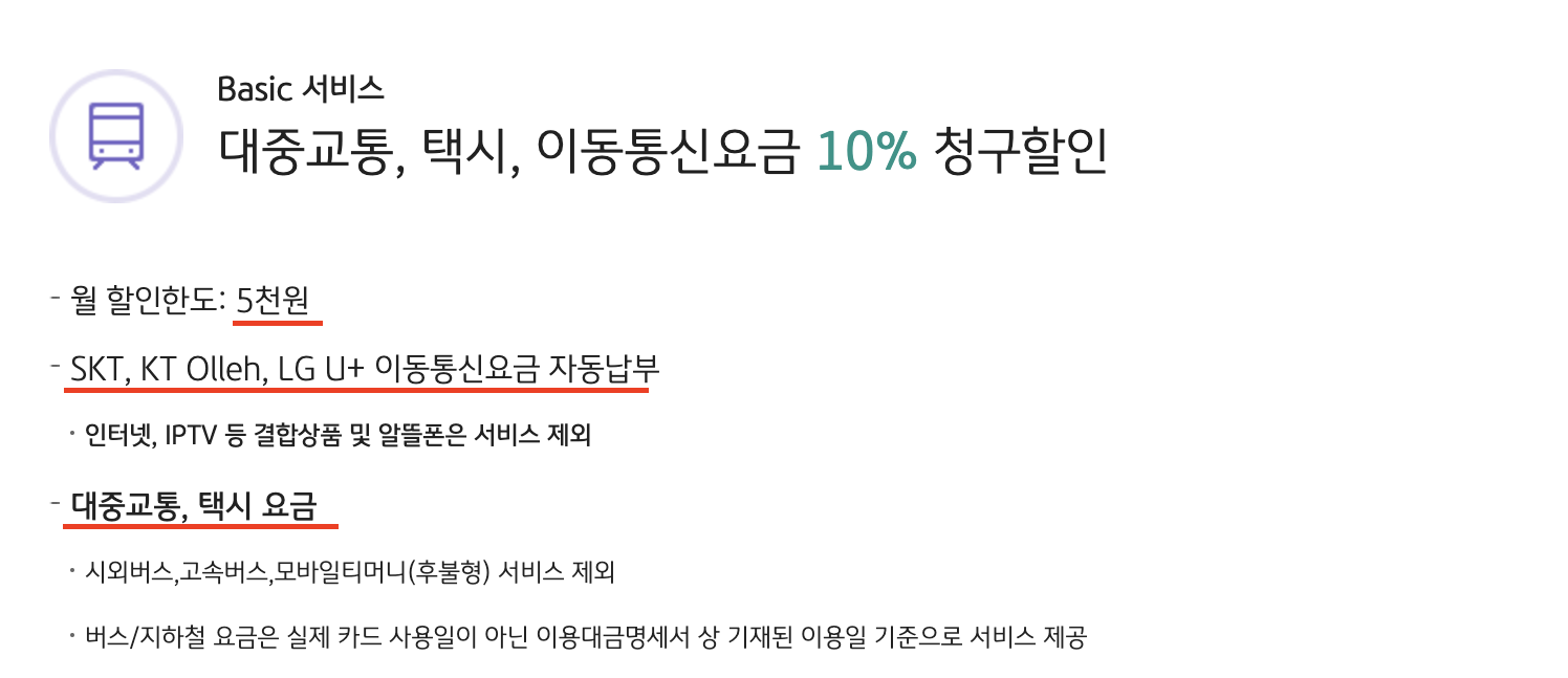 대중교통/택시/이동통신 10% 청구할인
