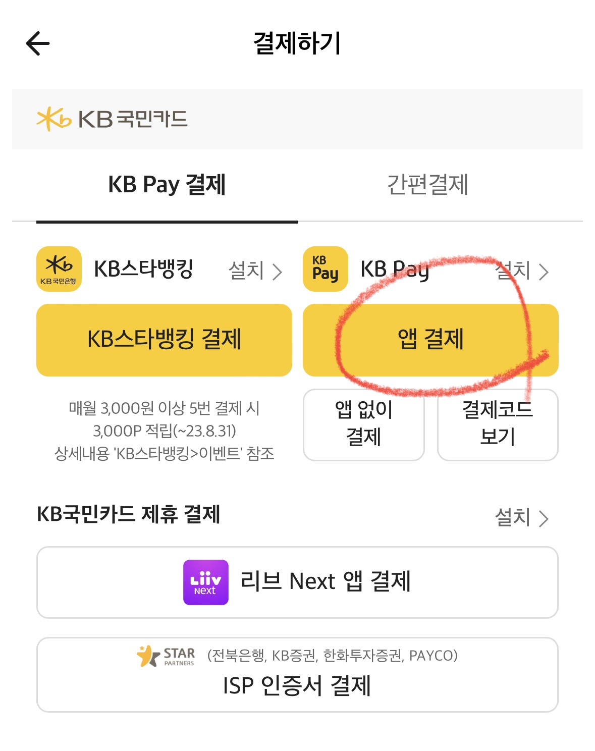 ▼모바일에서 간편 결제는 KB Pay에서 [앱결제] 클릭해서 사용하시면 할인 적용됩니다.
