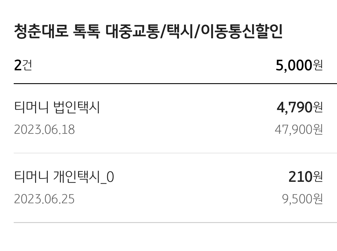 | 대중교통/택시/이동통신 | 10% | 5천원 |
