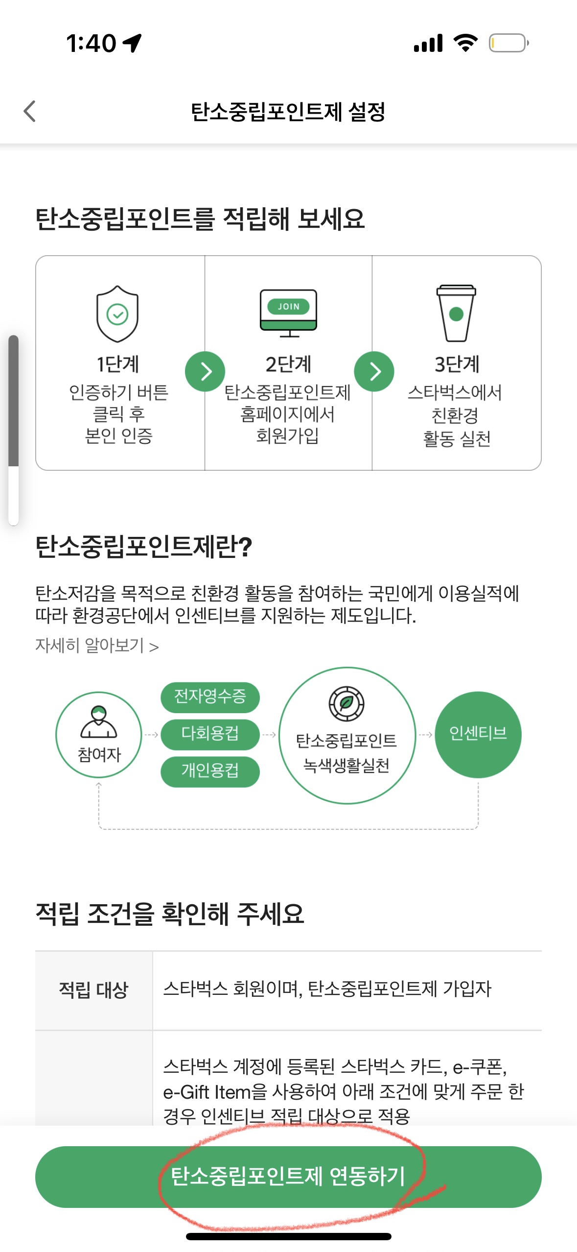 쏠쏠한 할인혜택 놓치지 않아야겠죠? 스타벅스 앱에서 탄소중립포인트와 간단히 연동이 가능하니 지금 바로 한번 연동해보시기 바랍니다.