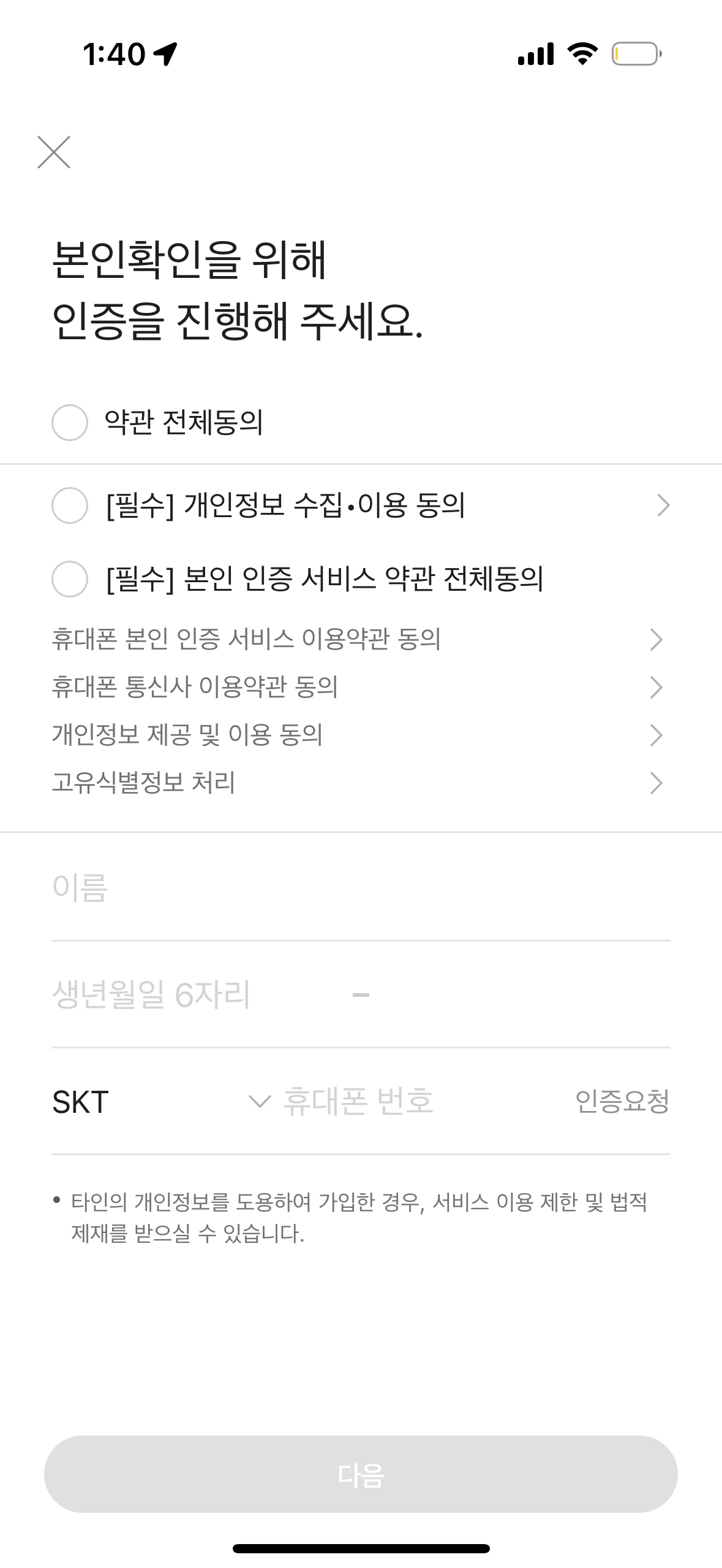 4. 본인인증을 진행합니다.