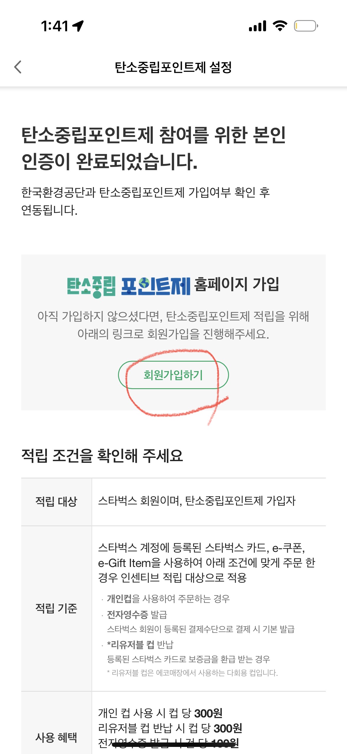 스타벅스 할인 받는 꿀팁 - 탄소중립포인트제