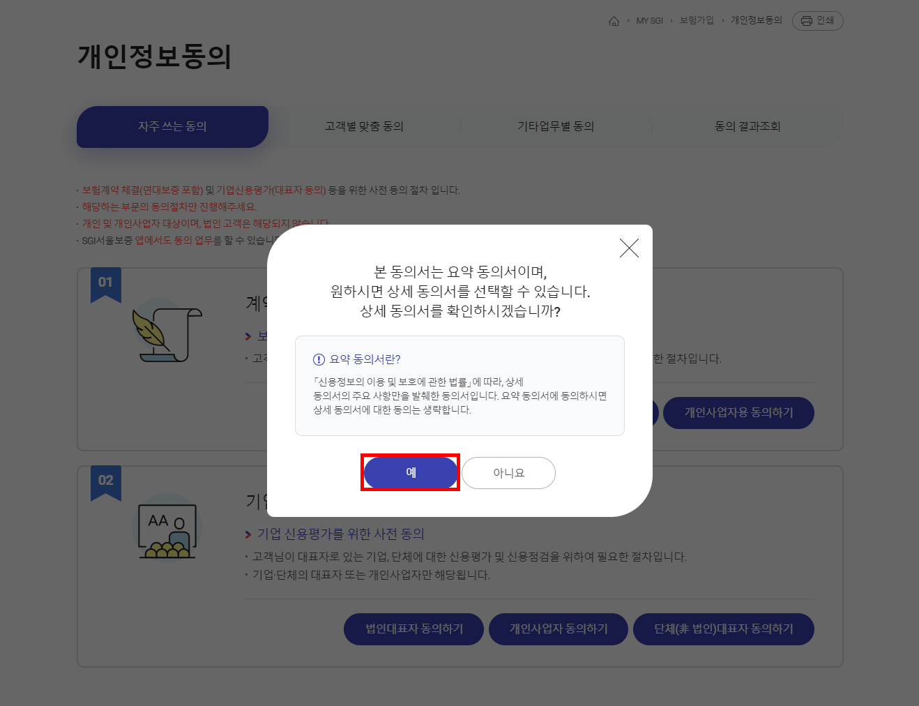 '개인사업자용 동의하기'를 클릭합니다.