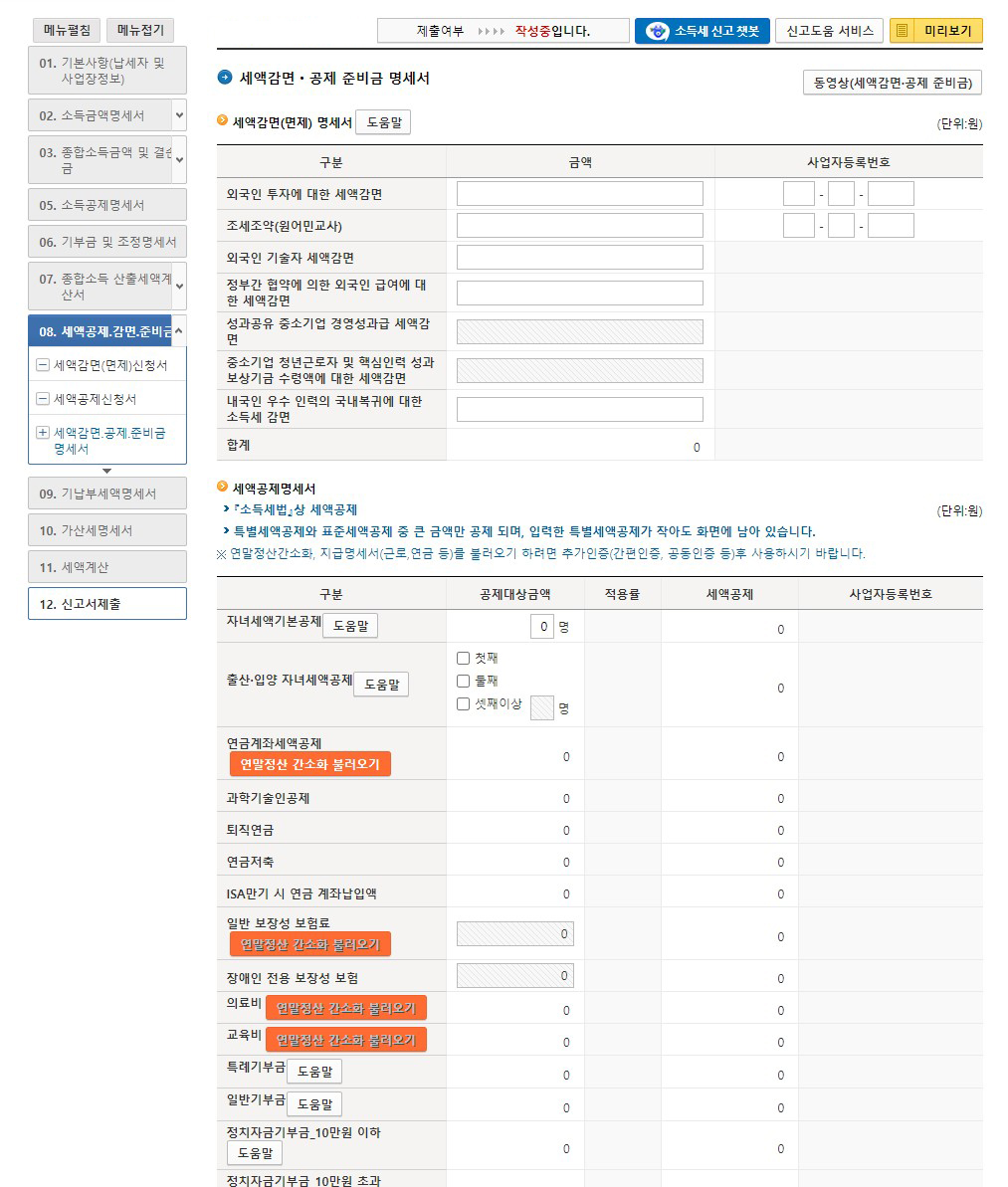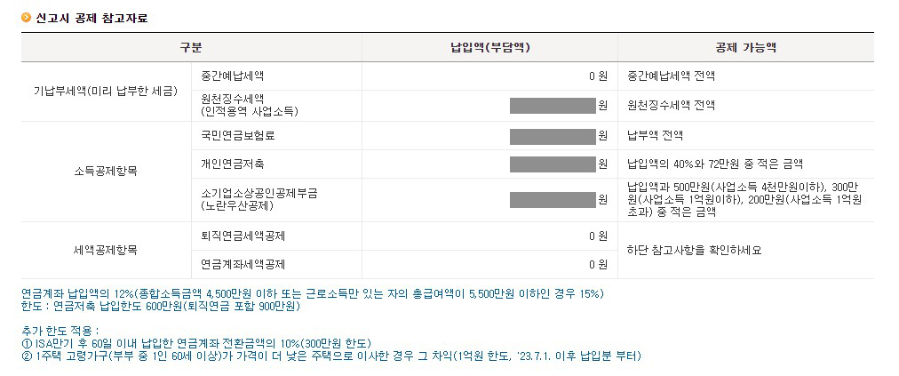 공제 받을 수 있는 항목이 있다면 입력합니다.