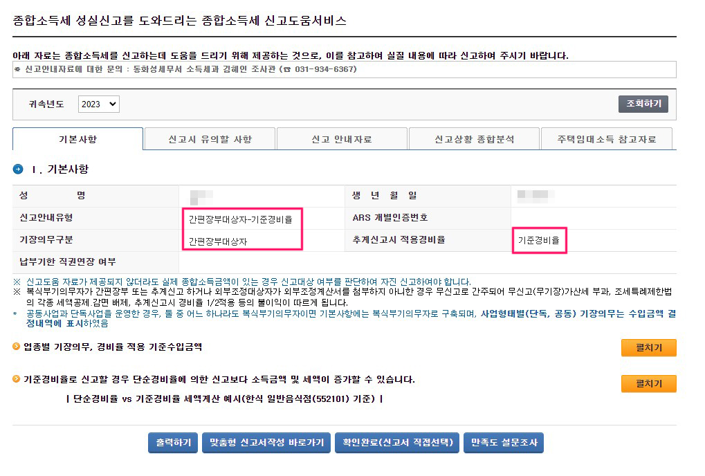 사업자 종합소득세 간편장부 셀프 신고 방법 기준경비율