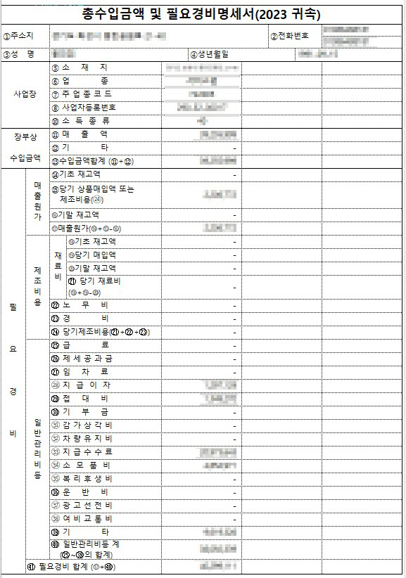 3) 그러면 이렇게 종합소득세신고에 필요한 필요경비명세서가 정리되어나오게 됩니다. 이 자료를 참고하여 종소세 신고시 입력하시면 됩니다.