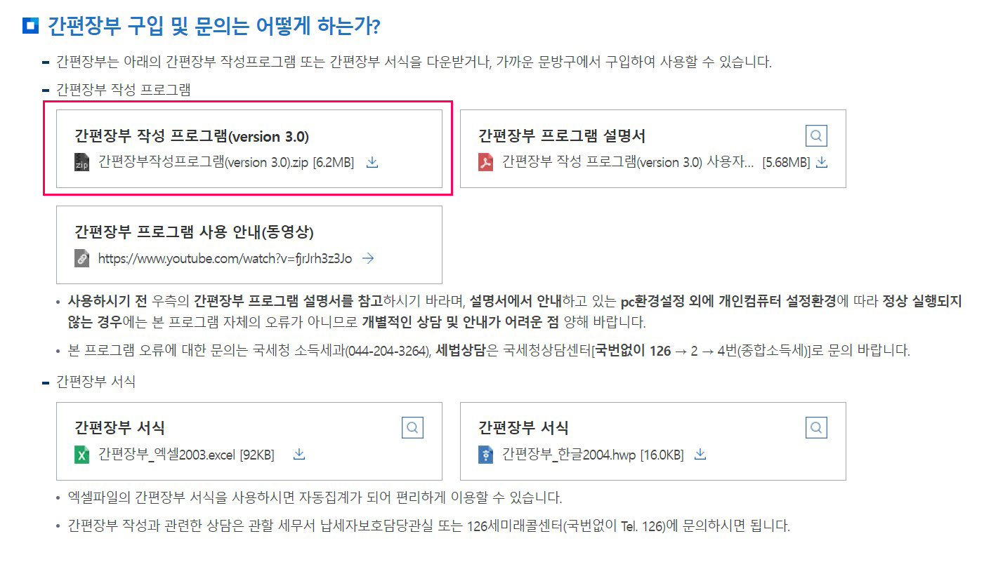국세청에서도 간편장부프로그램 사용방법에 대해 자세히 소개한 파일이 있으니