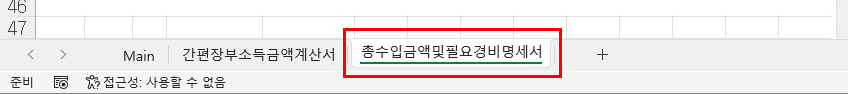 2) 하단 탭에서 [총수입금액및필요경비명세서]를 클릭합니다.