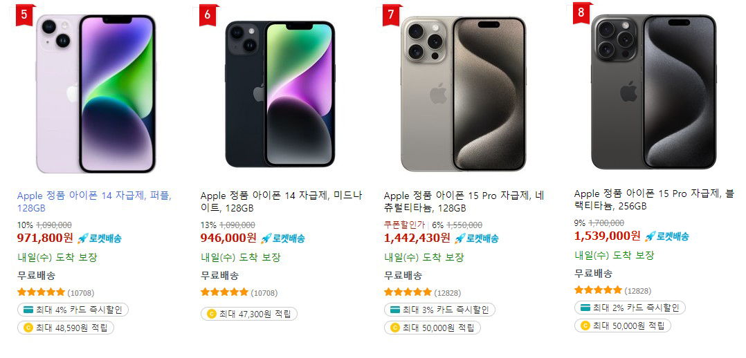 4) 아이폰 14 1,090,000원 946,000원
