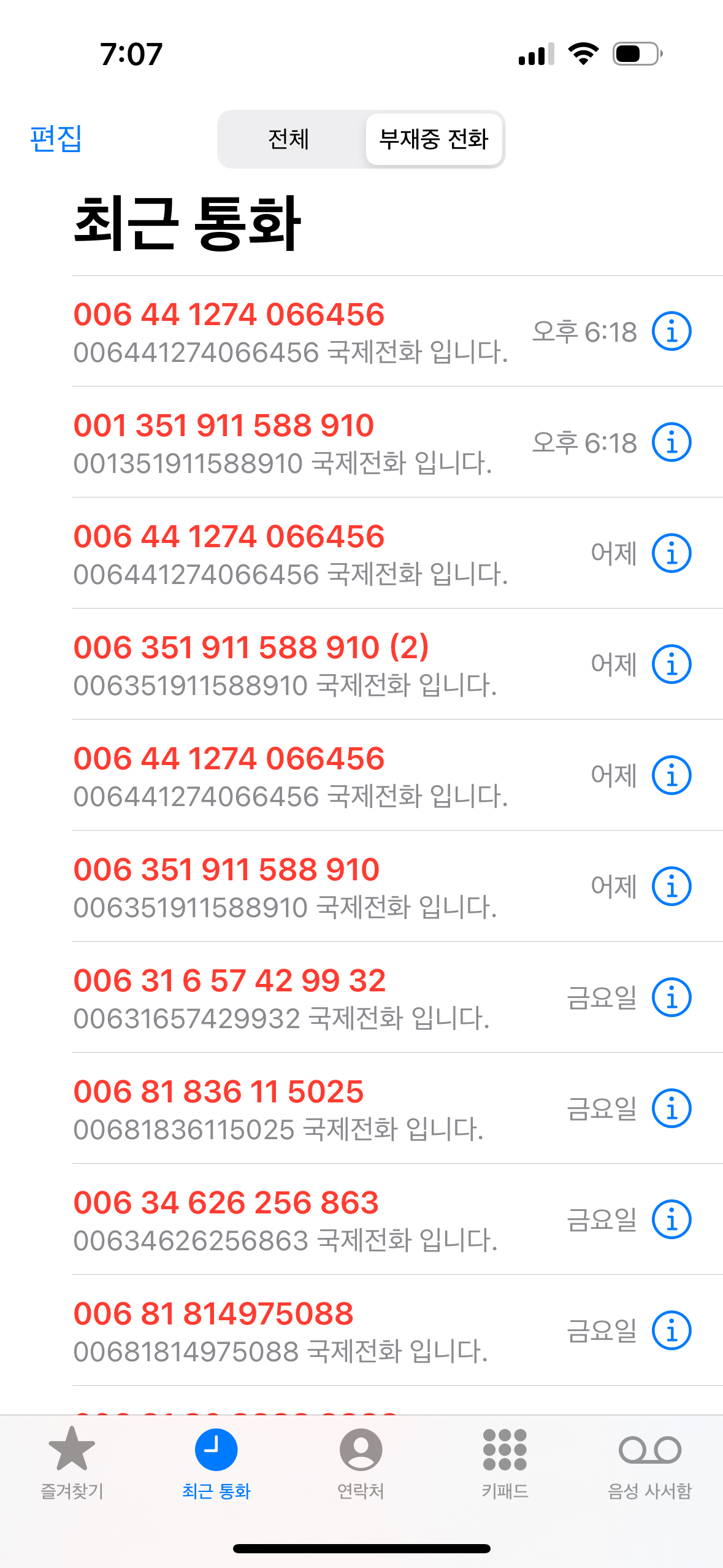 어느날인가 부터 갑자기 006, 001로 시작하는 해외 국제 전화 스팸 전화가 엄청 많이 왔습니다.