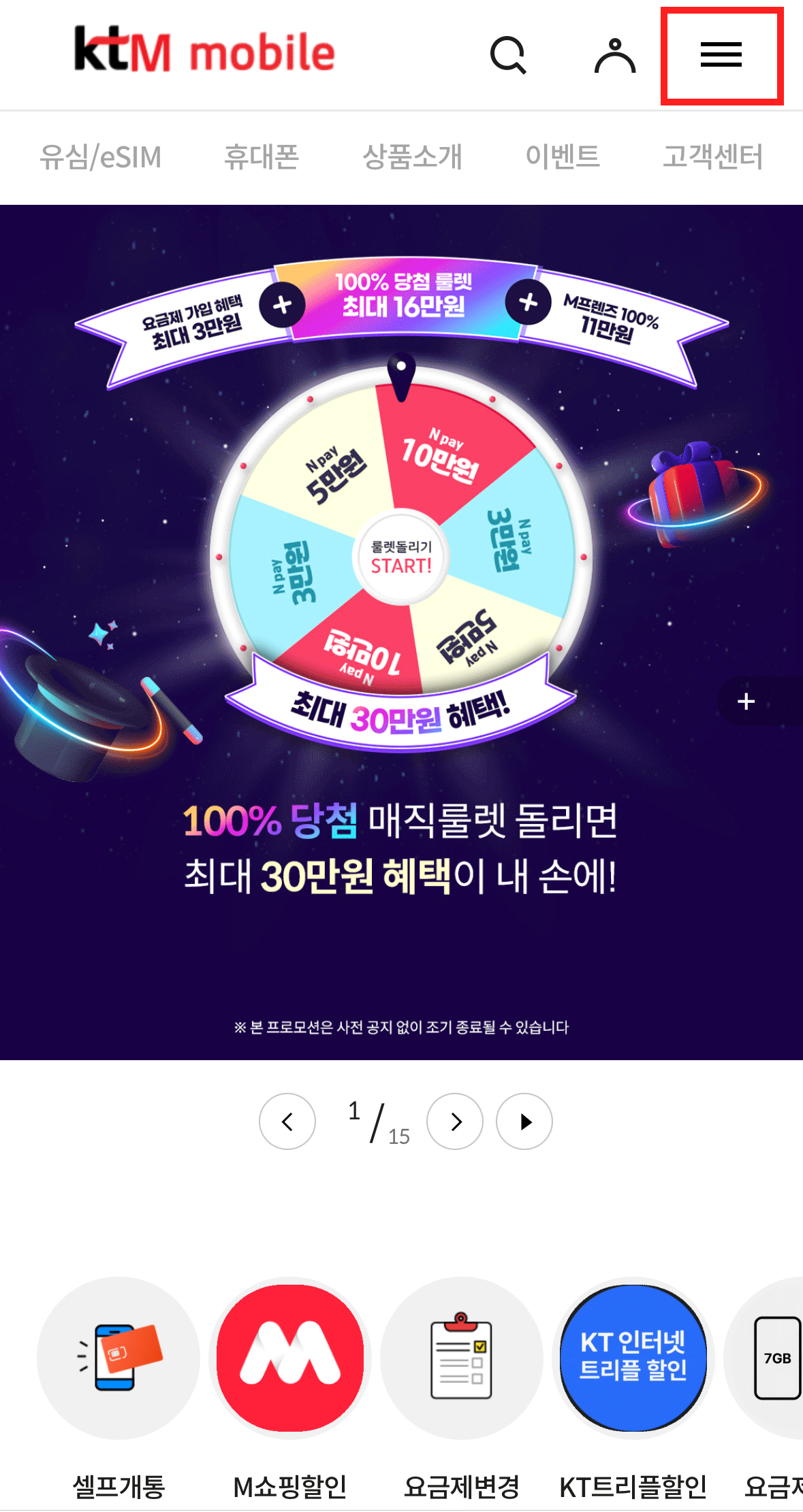 1. 먼저 KT M 모바일 홈페이지 로그인을 한 뒤,