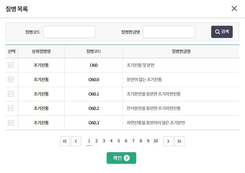 작성시 해당하는 고위험임산부 질병을 입력하면 됩니다. 제출하는 진단서와 동일하게 질병코드를 입력해주시면 됩니다.
