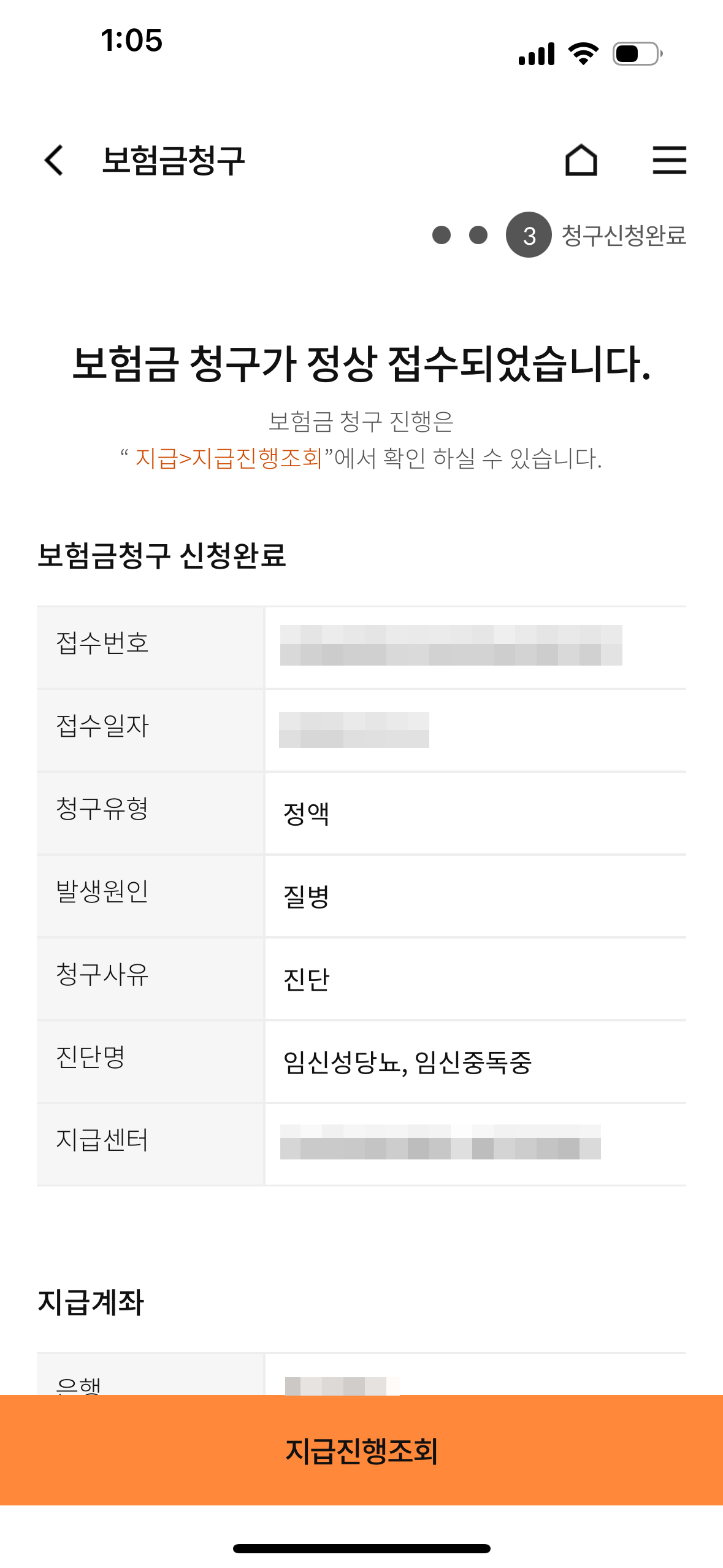 접수후 통상 7~10일정도 소요된다고하는데 저의 경우에는 이틀만에 계좌로 13만원(임신성당뇨 3만원 + 임신중독증 10만원)이 들어왔습니다.